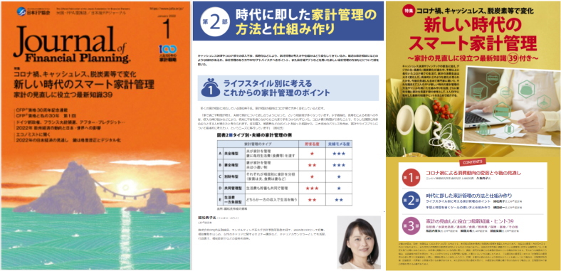 日本FP協会 会員向月刊誌 FPジャーナル 2022年1月号 特集記事「コロナ禍、キャッシュレス等で変化 新しい時代のスマート家計管理~家計の見直しに役立つ最新知識~」に掲載されました。