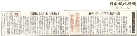 日本繊維新聞「節約よりも倹約 夏のボーナスの使い道」