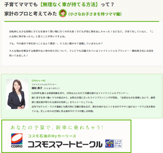 2017年12月26日「コスモスマートビークル」子育てママでも【無理なく車が持てる方法】って? 家計のプロと考えてみた(小学生以上のお子さまを持つママ編)![]() |