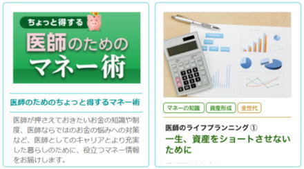 | 2019年04月10日 サノフィ製薬「医師のためのちょっと得するマネー術」第1回目。今回のテーマは医師のライフプランニング「一生、資産をショートさせないために」が掲載されました。 医師が押さえておきたいお金の知識や制度、医師ならではのお金の悩みへの対策など、医師としてのキャリアとより充実した暮らしのために役立つマネー情報を定期的にお届けしています。 https://e-mr.sanofi.co.jp/useful/money |