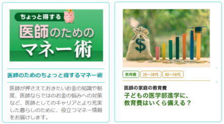 | 2019年07月10日 サノフィ製薬「医師のためのちょっと得するマネー術」第3回目。今回のテーマは「医師の家庭の教育費 子供の医学部進学に教育費はいくら備える?」が掲載されました。 医師が押さえておきたいお金の知識や制度、医師ならではのお金の悩みへの対策など、医師としてのキャリアとより充実した暮らしのために役立つマネー情報を定期的にお届けしています。 https://e-mr.sanofi.co.jp/useful/money |