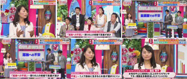 ![]() ![]() ![]() 「夫婦JAPAN」フジテレビ 夫婦JAPANは、気になる夫婦間の…ちょっとした問題を街頭で夫と妻に調査。毎回テーマに応じた専門家が一言アドバイスをする番組です。夫婦の”秘密の貯金”についてファイナンシャルプランナーとしてコメントいたしました。 |