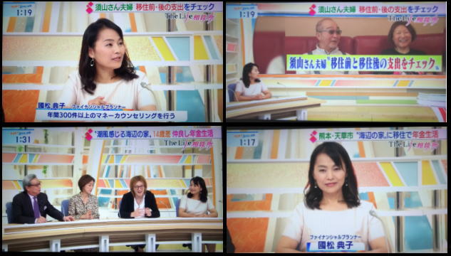 | 2019年9月19日 13:05〜 テレビ朝日「大下容子のワイド!スクランブル」にスタジオ生出演いたしました。テーマは「人生100年時代 地方移住の実情 熊本-天草市編 “潮風感じる海辺の家" 14歳差夫婦の仲良し年金生活」移住前と移住後の家計チェックなどコメントさせていただきました。神奈川県川崎市から海がある街にあこがれ全国各地を旅して移住先を熊本県天草市に決められたご夫婦の移住生活についてコメントさせていただきました。 |