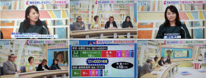 | 2019年9月26日 13:05〜 テレビ朝日「大下容子のワイド!スクランブル」にゲストコメンテーターとしてスタジオ生出演いたしました。テーマは「人生100年時代を豊かに生きるための年金生活者の地方移住”女性1人、すべてを捨てて移住”趣味を楽しむ年金生活”」東京都台東区から秋田県由利本荘市に移住された女性の移住生活についてコメントさせていただきました。 |