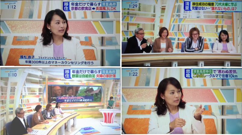 | 2019/7/25 テレビ朝日「大下容子のワイド!スクランブル」コメンテーターとしてスタジオ出演いたしました。テーマは「人気移住スポット”清里”へ移住されたご夫妻のイギリス風 年金生活~年金だけで暮らす清里高原”第2の原宿”が終のすみかに」が放送されました。京都府木津川市でパン・スコーンが大人気の飲食店を営む店舗兼住宅を人気絶頂期に売却し、山梨県北斗市清里高原へ移住。敷地面積100坪建物30坪3LDKの2階建ての住宅を3500万円で一括購入されたご夫妻の生活を取材、コメントいたしました。 https://tvtopic.goo.ne.jp/program/ex/91638/1282721/ |