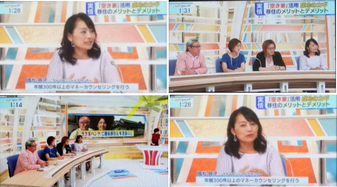 | 2019年7月18日 13:05〜 テレビ朝日「大下容子のワイド!スクランブル」にスタジオ生出演いたしました。テーマは「都会+田舎の良いとこ取り”トカイナカ移住”の年金生活とは?」神奈川県川崎市3LDKマンションを2500万円で売却し、茨城県鹿嶋市に移住、敷地面積100坪2LDK平屋建てを1300万円で購入移住されたご夫婦を取材されました。https://tvtopic.goo.ne.jp/program/ex/91638/1280809/ |