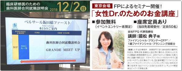 | 2018年12月 2日 「女性Dr.のためのお金講座~」セミナー講師を務めさせていただきました。 (主催:株式会社クオキャリア in:ベルサール飯田橋) |