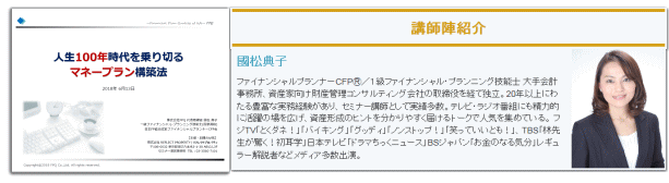 | 2018年 4月26日 『人生100年時代を乗り切るマネープラン構築法』セミナー講師を務めさせていただきました。 (主催:株式会社リフレクトプロパティ) |
