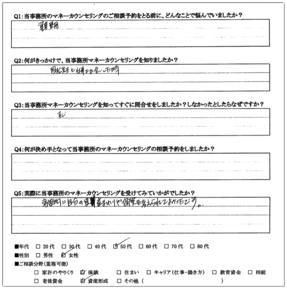 客観的に自分の資産まわりや保険を考えられてよかったです。」